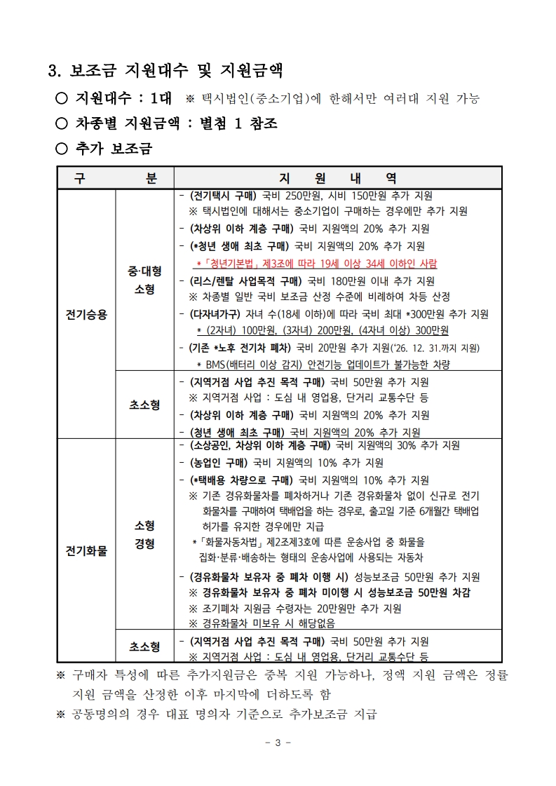 - 청년 생애 최초 차량 구매자: 국비 지원액의 20% 추가