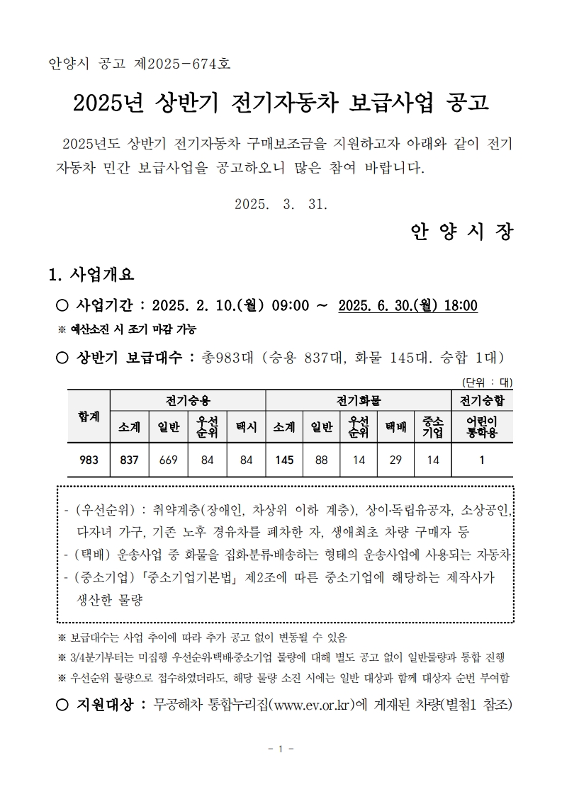 그러다 우연히 안양시에서 진행하는 2025년 상반기 전기자동차 구매보조금 공고를 보게 됐고 이게 왠 떡인가 싶었습니다!