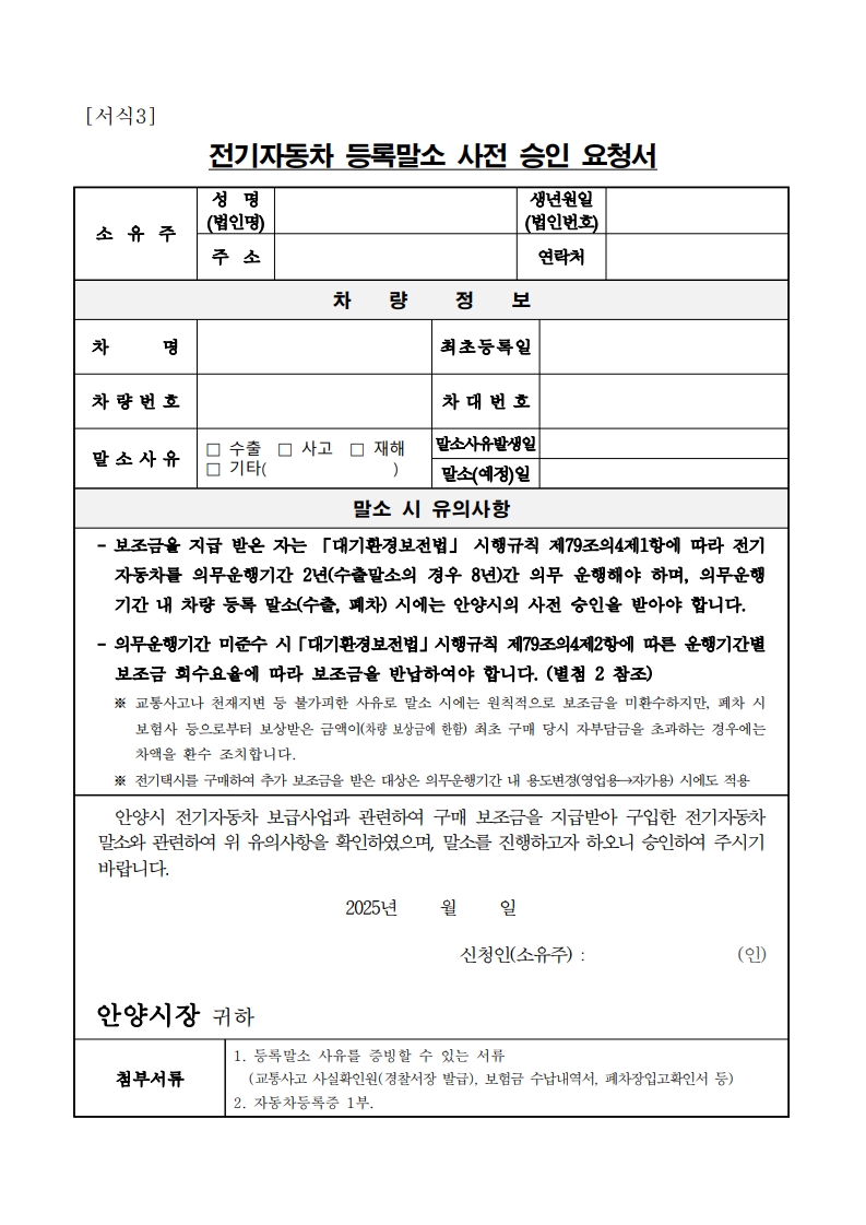 명의 변경 불가 | 보조금 신청 이후 차량 명의 변경이 불가, 등록 정보와 다를 경우 지원 취소 |