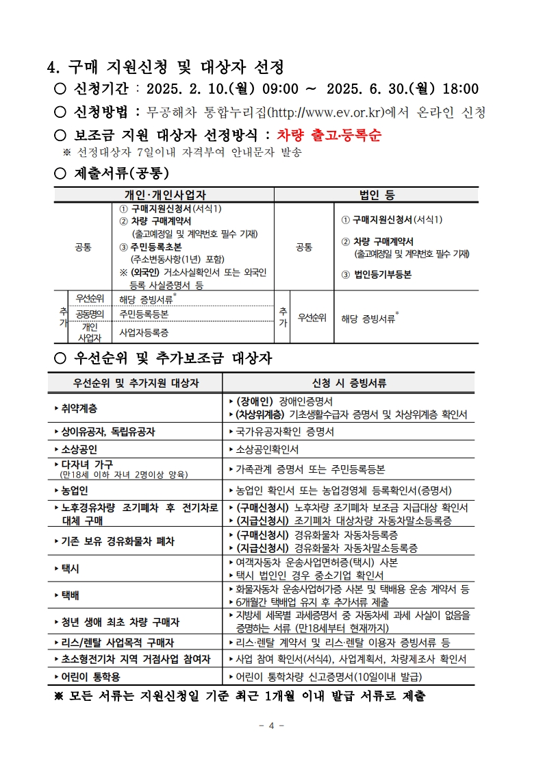 특히 취약계층, 다자녀 가구, 생애 최초 차량 구매자 등은 우선순위로 선정되어 보조금을 보다 유리하게 받을 수 있어요.
