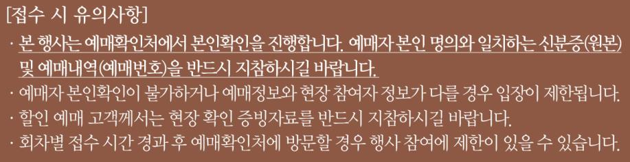 네, 본인확인을 진행하기 때문에 신분증 꼭 지참하셔야 하고 예매번호도 알고 가셔야 합니다.