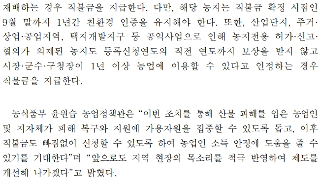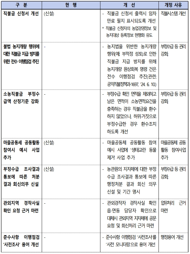 - 기존 수혜자: 2016년 이후 직불금 수령한 자