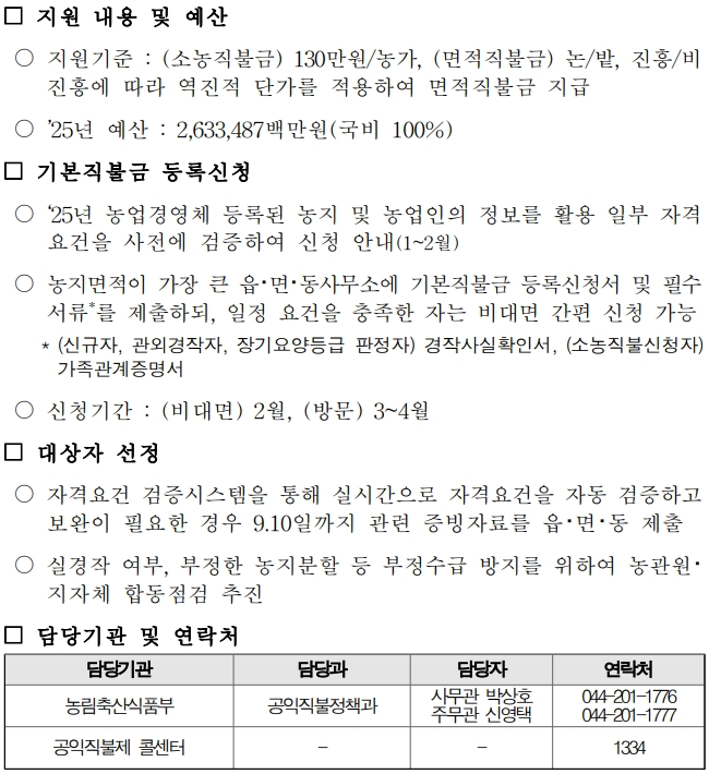 📞 궁금할 땐? 공익직불제 콜센터 1334