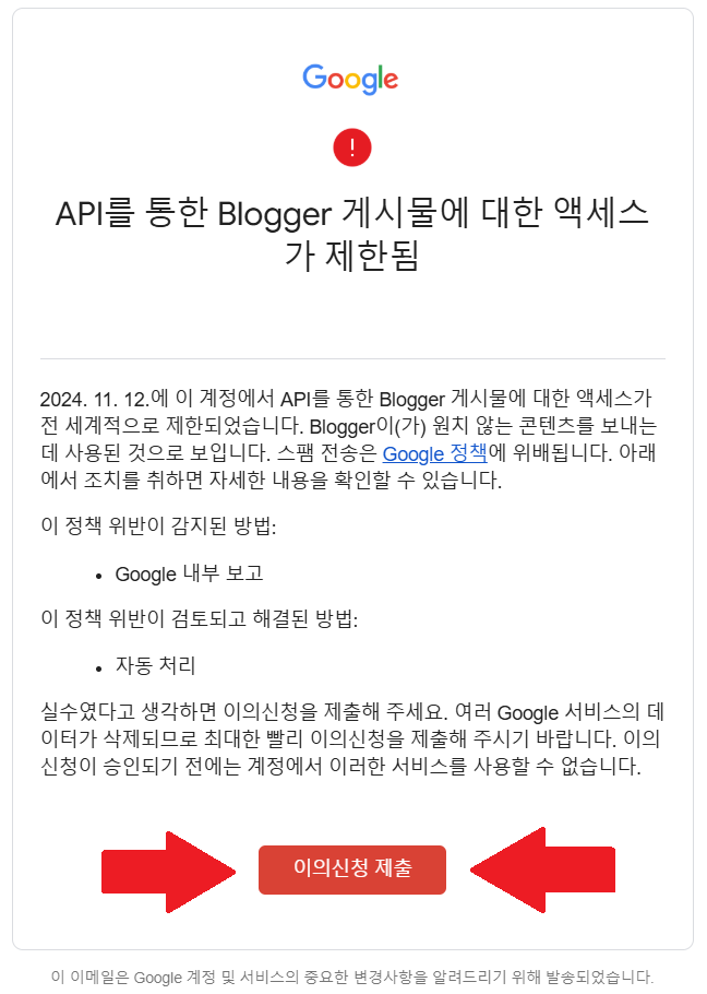 이의신청 후 하루만에 구글로부터 이런 메일을 받았습니다.