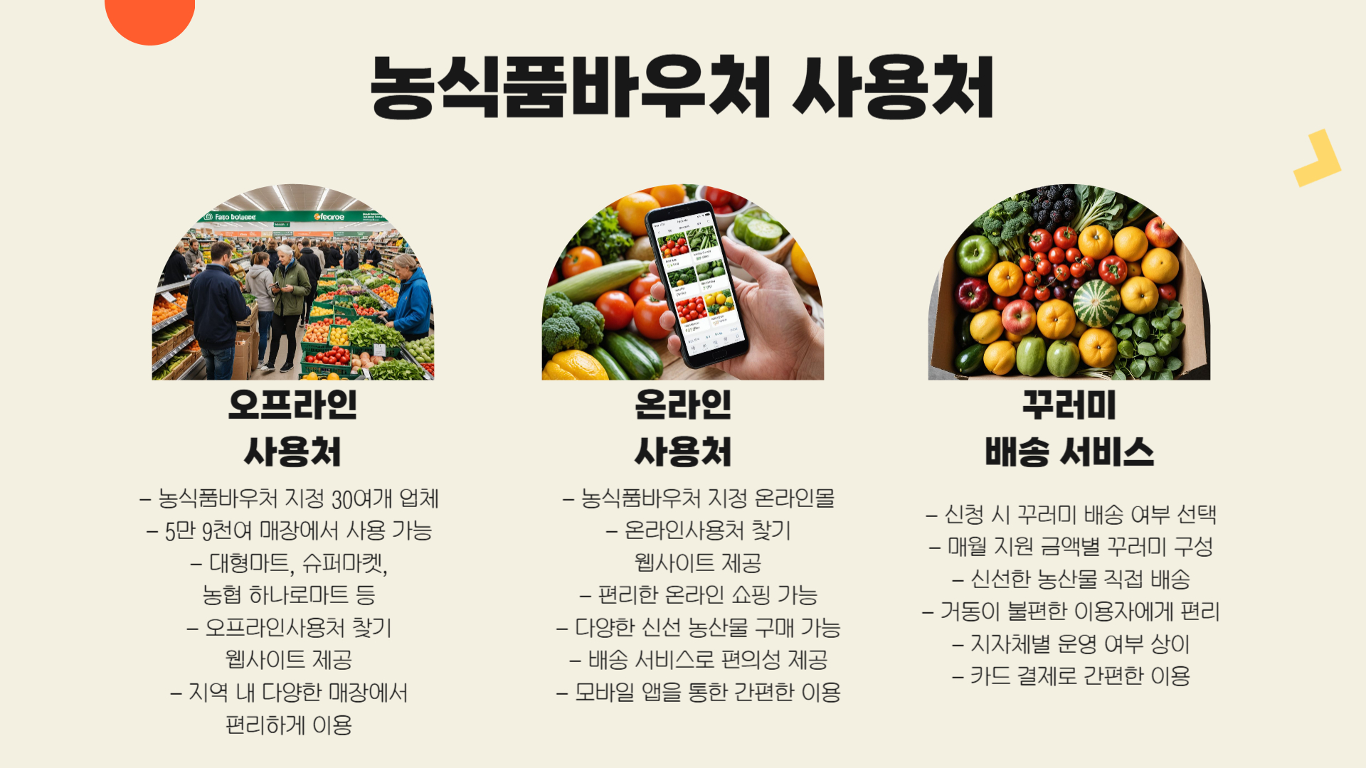 ✅ 오프라인 매장: 농식품바우처 사용이 지정된 30여개 업체, 5만 9천여 매장