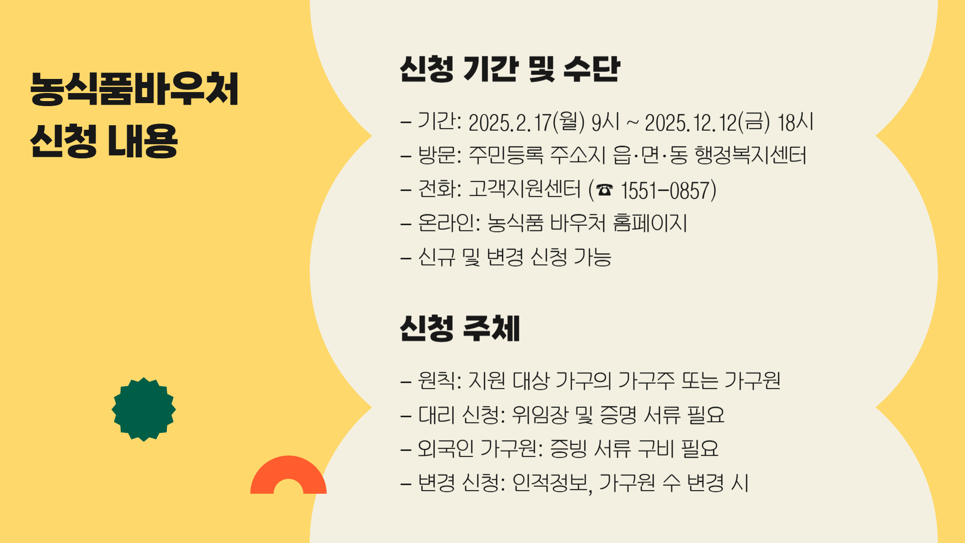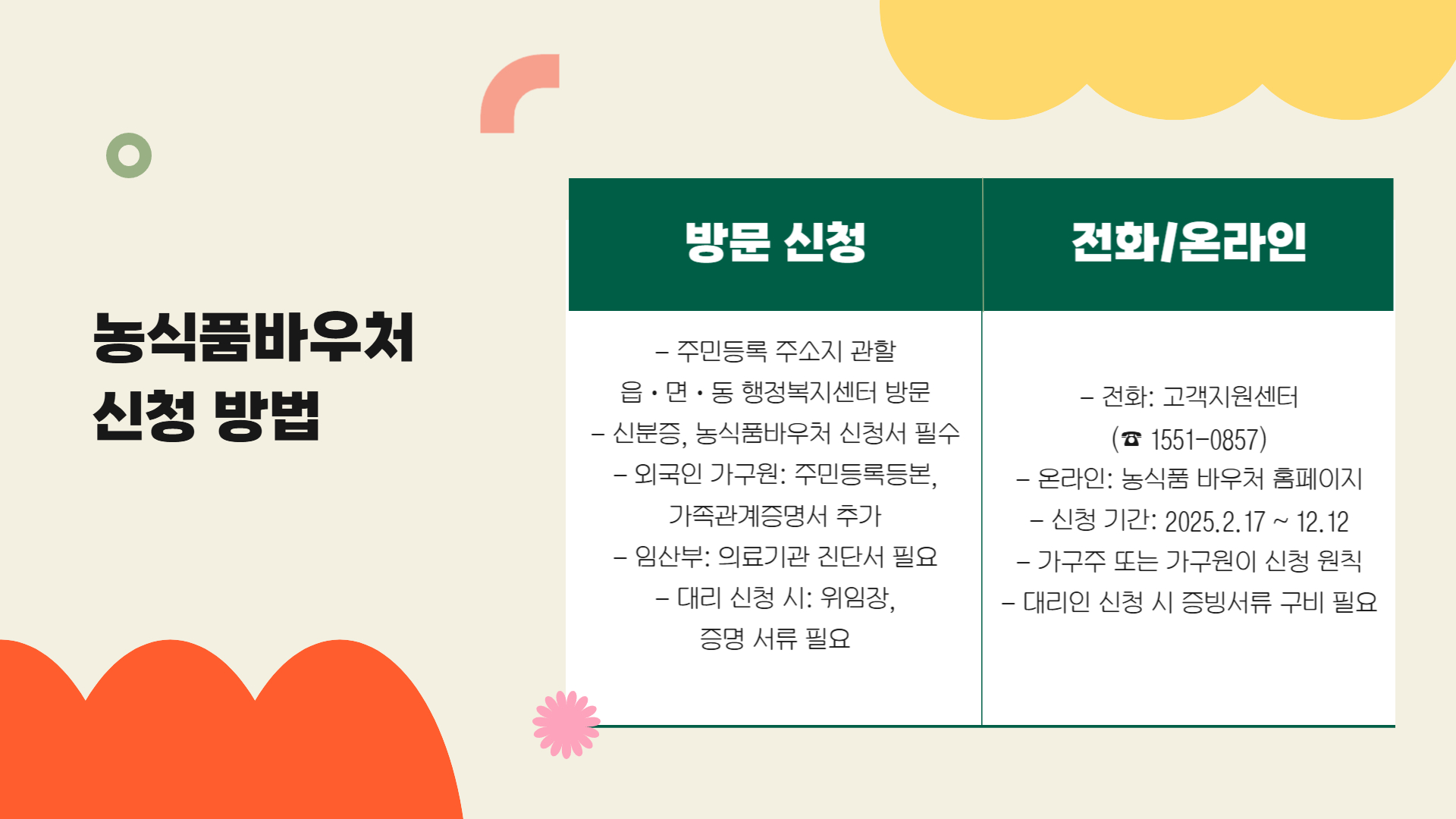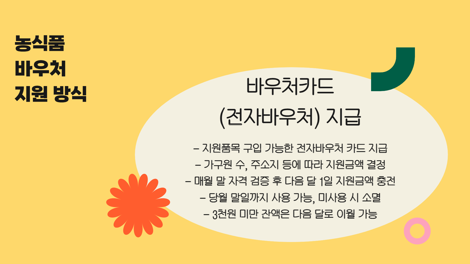 ✅ 필수 서류: 본인 신분증, 농식품바우처 신청서