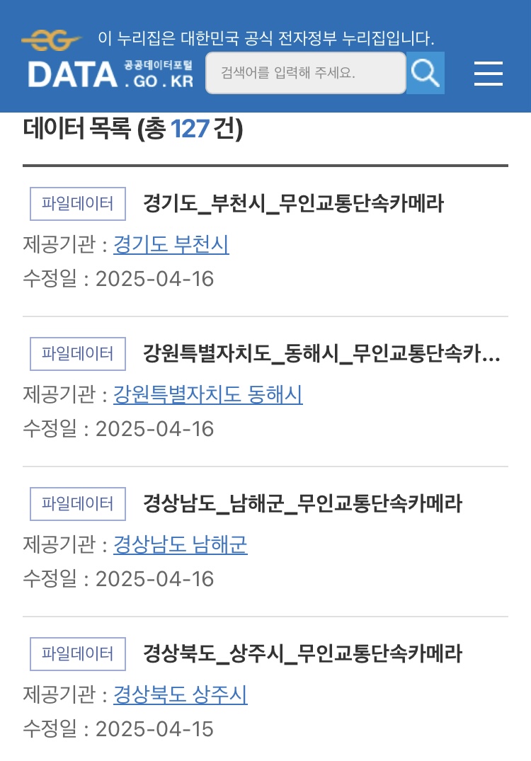 A. 고정식 단속카메라 정보는 공공데이터 포털누리집에서 확인할 수 있습니다.