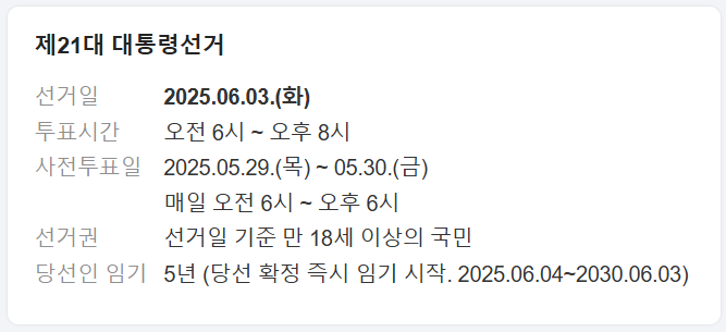 제21대 대통령 선거일 2025년 6월 3일 화요일로 확정! 임시공휴일 지정으로 휴무까지 🎉