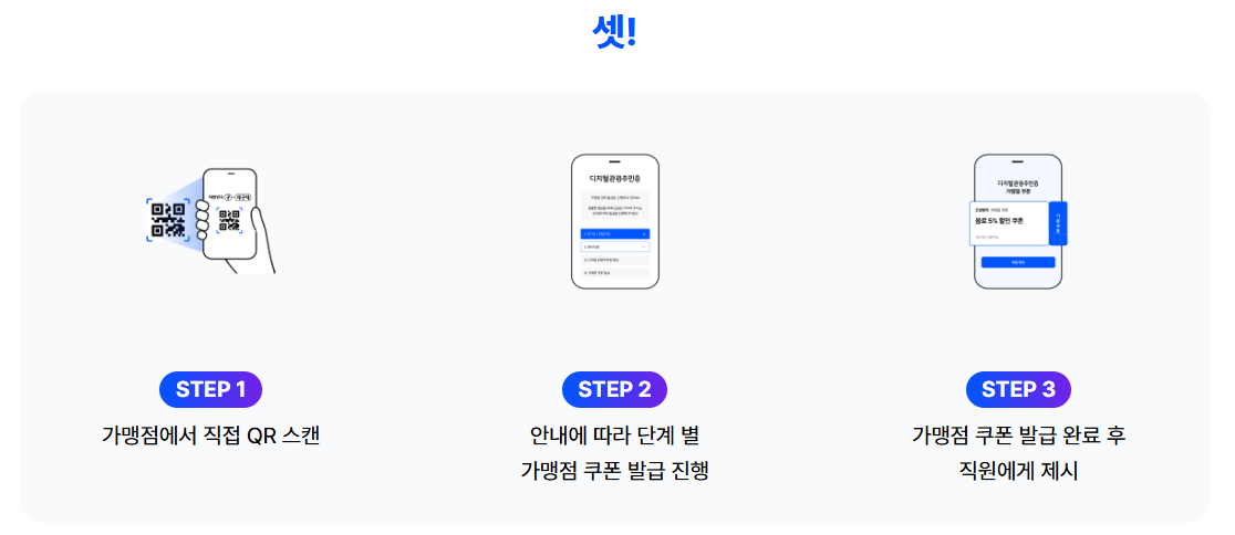 앱 설치 후 간편 인증으로 즉시 발급 | 카페, 식당, 숙소, 체험 프로그램 등 | 지역 할인, 경품 이벤트, 전용 혜택 |