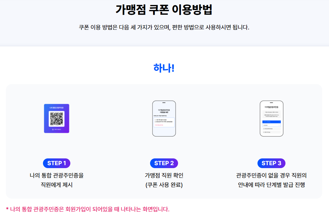 디지털관광주민증이란? | 여행객도 혜택받는 주민 전용 디지털 카드입니다. |