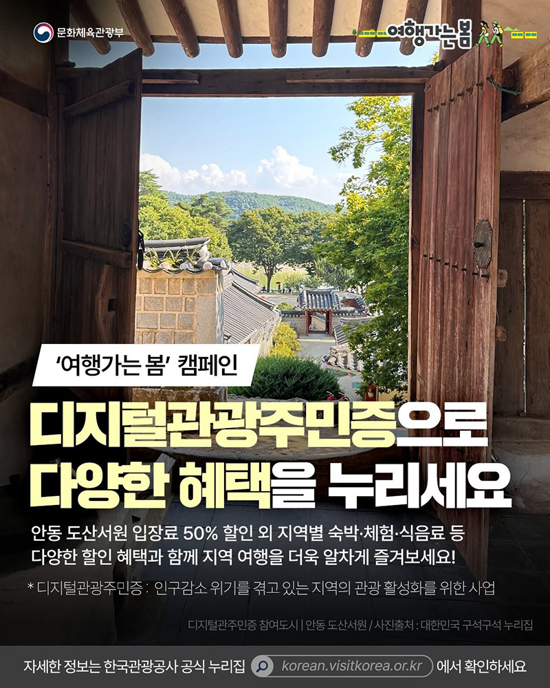 디지털관광주민증은 여행지에서 지역 주민처럼 다양한 혜택을 누릴 수 있는 서비스로, 지역 경제 활성화를 위해 문화체육관광부와 한국관광공사가 주도하고 있는 사업입니다. 단순한 관광이 아닌 지역 체류형 여행을 유도하여 여행객이 해당 지역과 더욱 깊은 유대감을 형성할 수 있도록 설계되었습니다. 참여자는 해당 지역의 식당, 카페, 숙소, 체험 프로그램 등에서 다양한 할인 혜택과 우대 서비스를 제공받을 수 있습니다. 특히, 관광지에서 잊지 못할 추억을 만들면서 합리적인 소비까지 가능한 이 제도는 누구에게나 매력적인 선택지로 떠오르고 있습니다.
