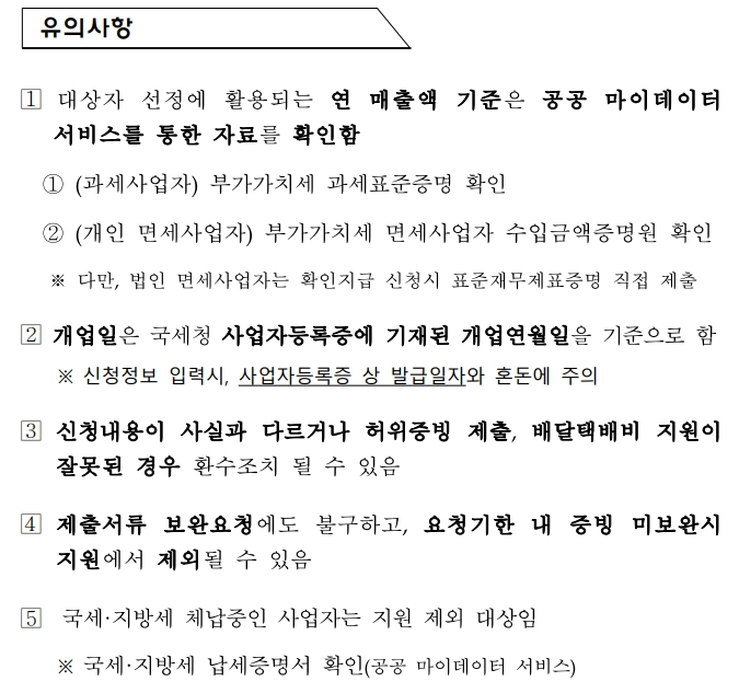 ⚠️ 소상공인 배달택배비 지원 신청 시 유의사항