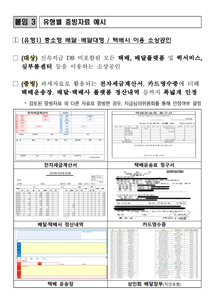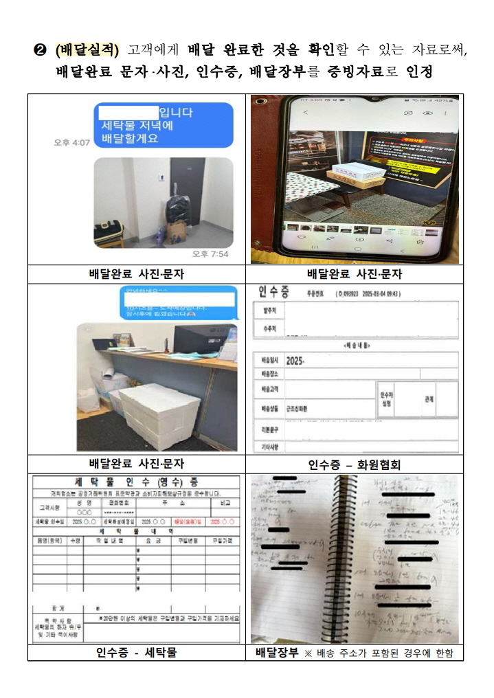 - 전자세금계산서, 택배운송장, 영수증 등 증빙서류 필요
