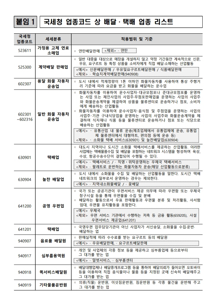 💡 직접 배달하거나, 택배사 이용, 배달의민족·요기요 같은 앱을 쓰셨다면 대부분 해당됩니다.