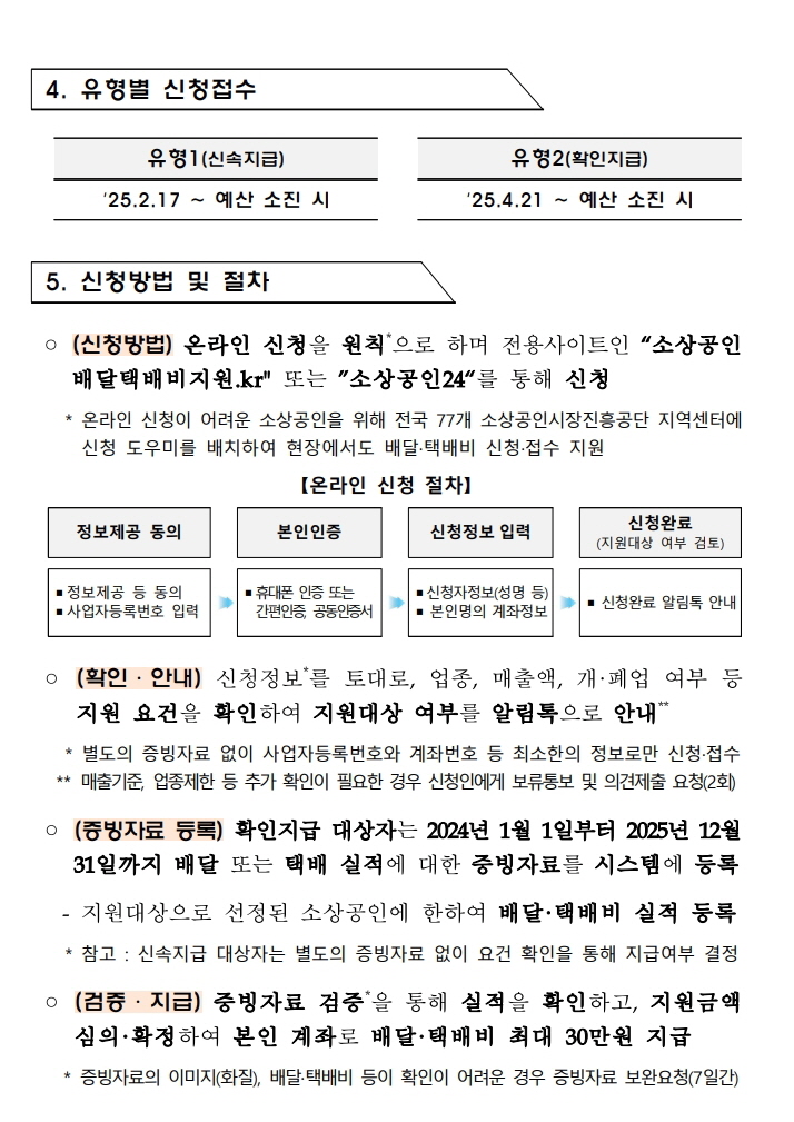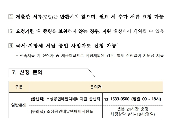 - 2024년 1월 이후 배달·택배 실적이 있는 사업자