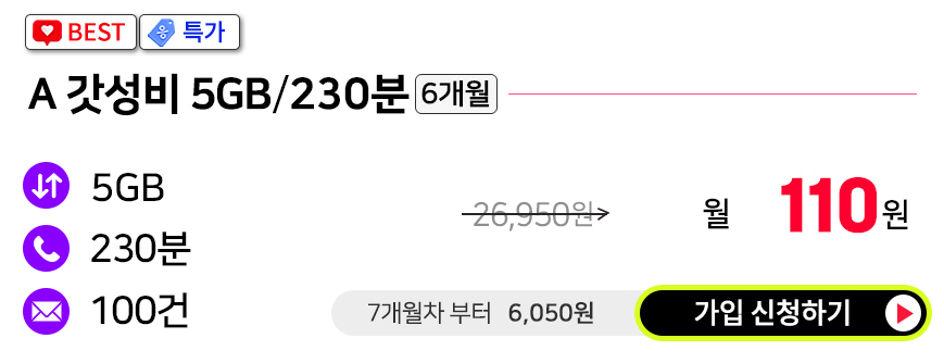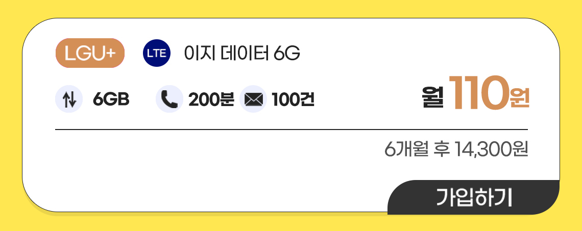 3월 현재는 110원 요금제가 가장 저렴한데요~