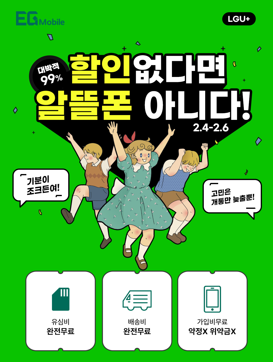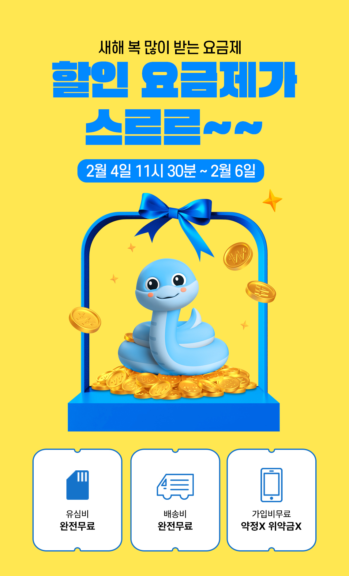 이지모바일이랑 에이모바일 2개가 가장 저렴한데 이지모바일 이벤트는 2025년 2월 6일까지!!!