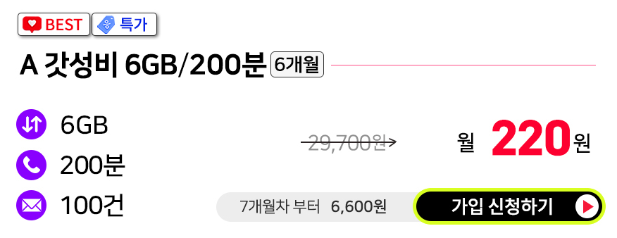 다음 3가지는 6개월 동안 사용 가능한 요금제입니다.