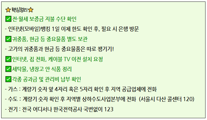 - ✔️ 전입 신고 및 각종 주소 변경 준비