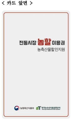 - 전통시장 방문해 전용 카드(이용권)로 현장 구매 시 충전 금액 20% 추가 지원
