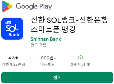 1단계 | 앱스토어나 플레이스토어에서 신한 SOL 뱅크 또는 기업 i-one 뱅크 검색 |