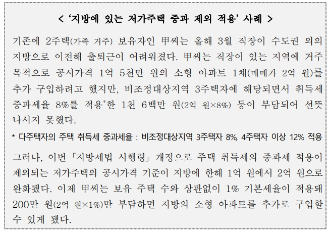 🏡 지방 저가주택 취득세 중과 기준 완화 소식
