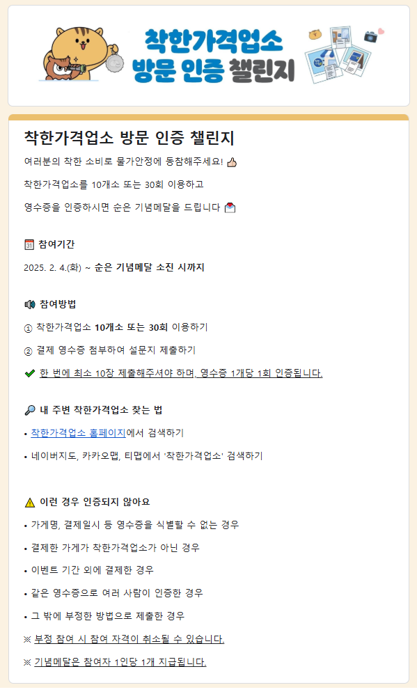 - 착한가격업소가 아닌 곳의 영수증은 인정되지 않습니다.