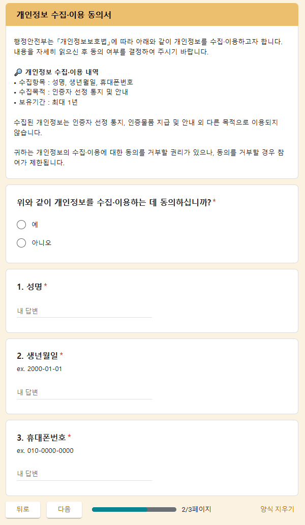 - 영수증을 첨부해 설문지를 제출하면 인증 완료!