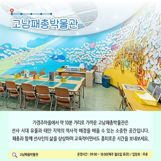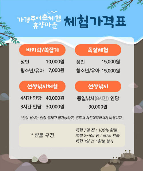 - 체험프로그램: 갯벌체험, 어촌체험, 해산물 잡기 등