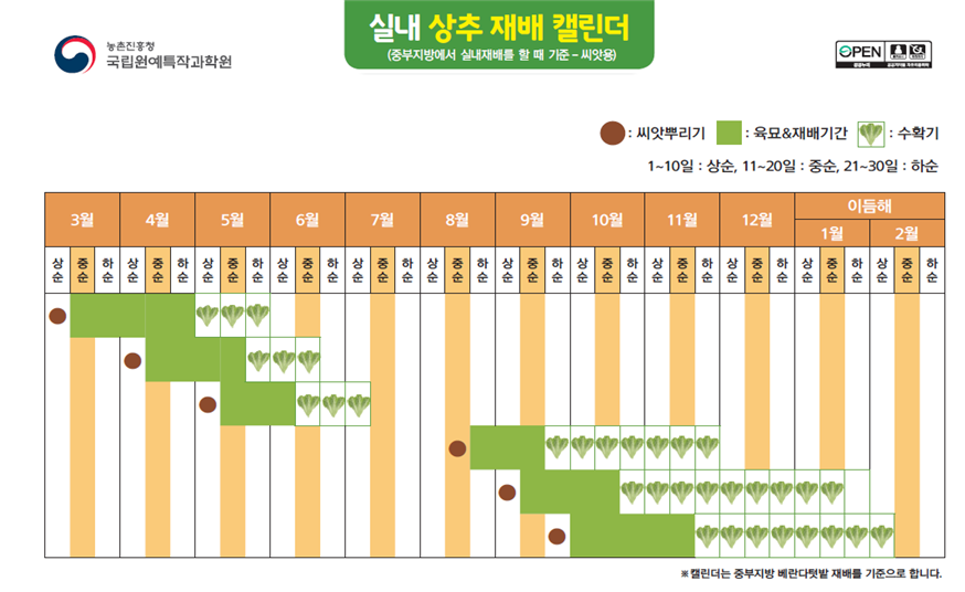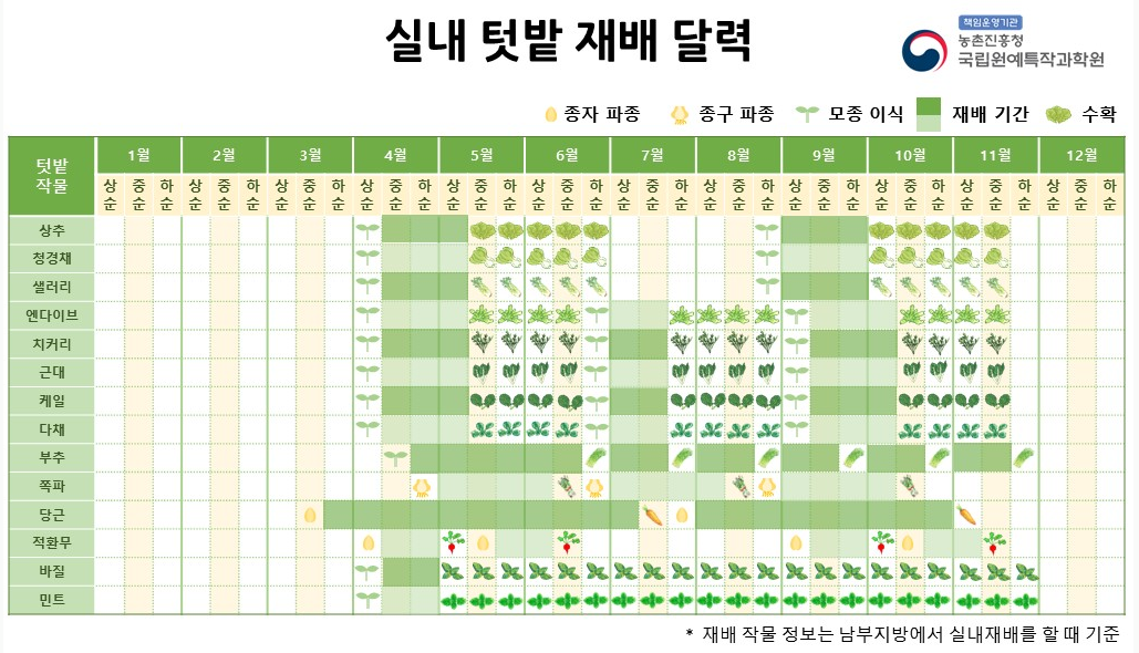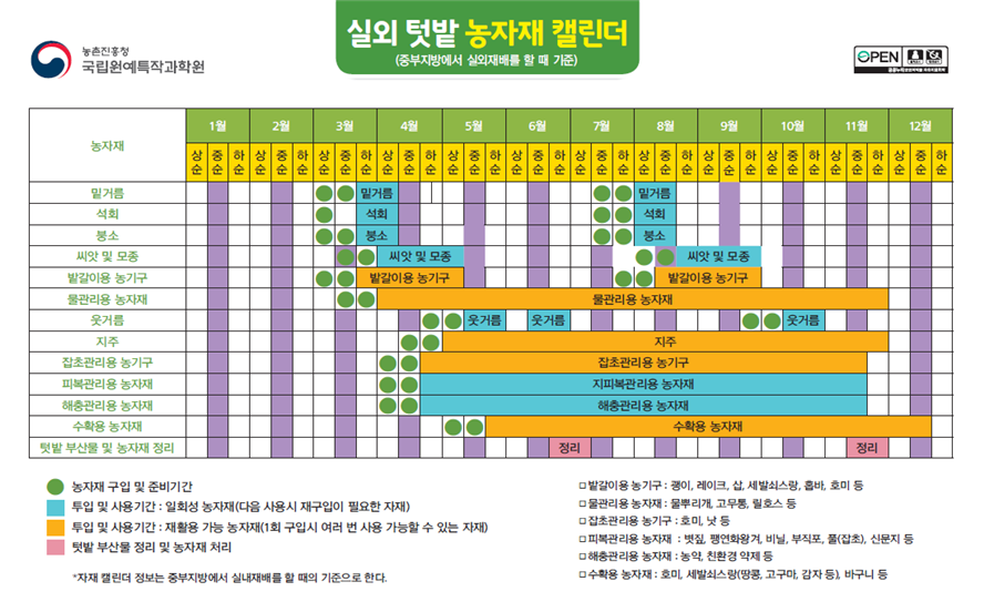 아래 계획표를 참고하셔서 여러분만의 텃밭을 잘 가꾸시기 바랍니다.