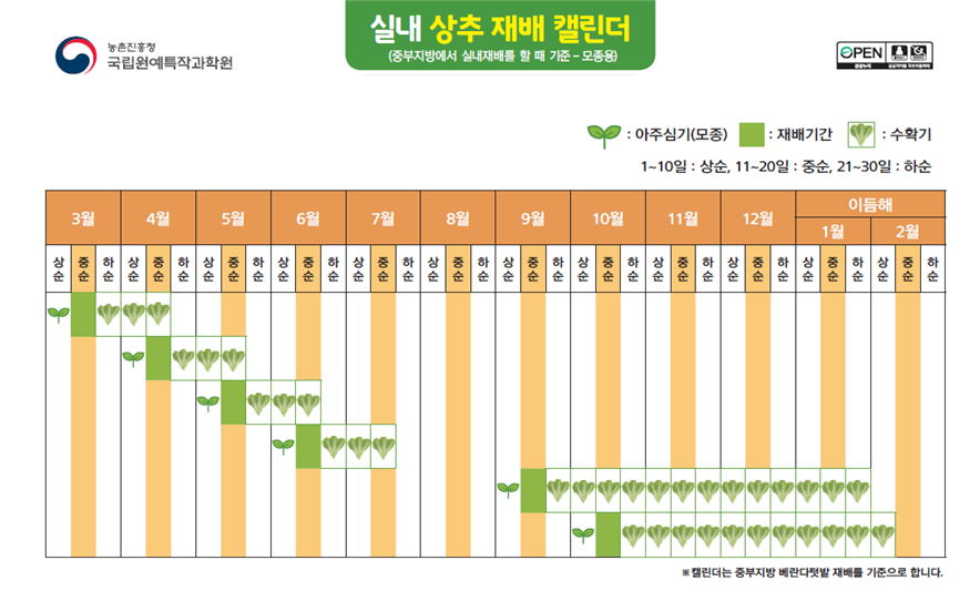 상추 | 3~5월, 9~10월 | 반그늘에서도 잘 자람 |