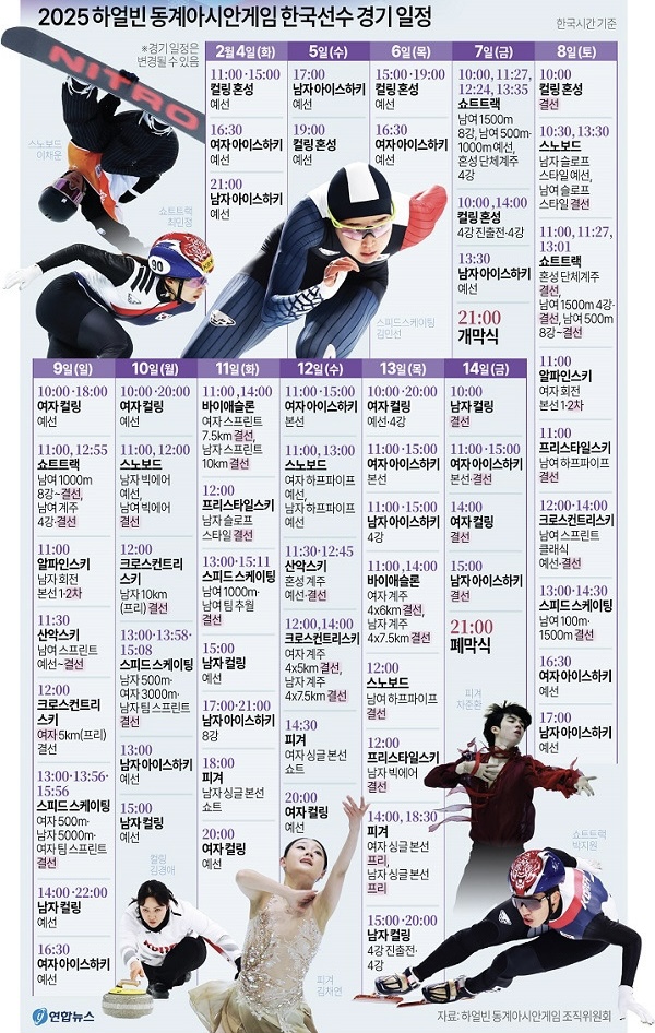 오늘 2025년 하얼빈동계 아시안게임 개막식이 열립니다. 경기 일정 확인하시고실시간 방송도 보시면서출전하는 우리나라 선수들 함께 응원합시다!! 🏆 실시간 방송 시청하러 가기👇👇👇👇MBC