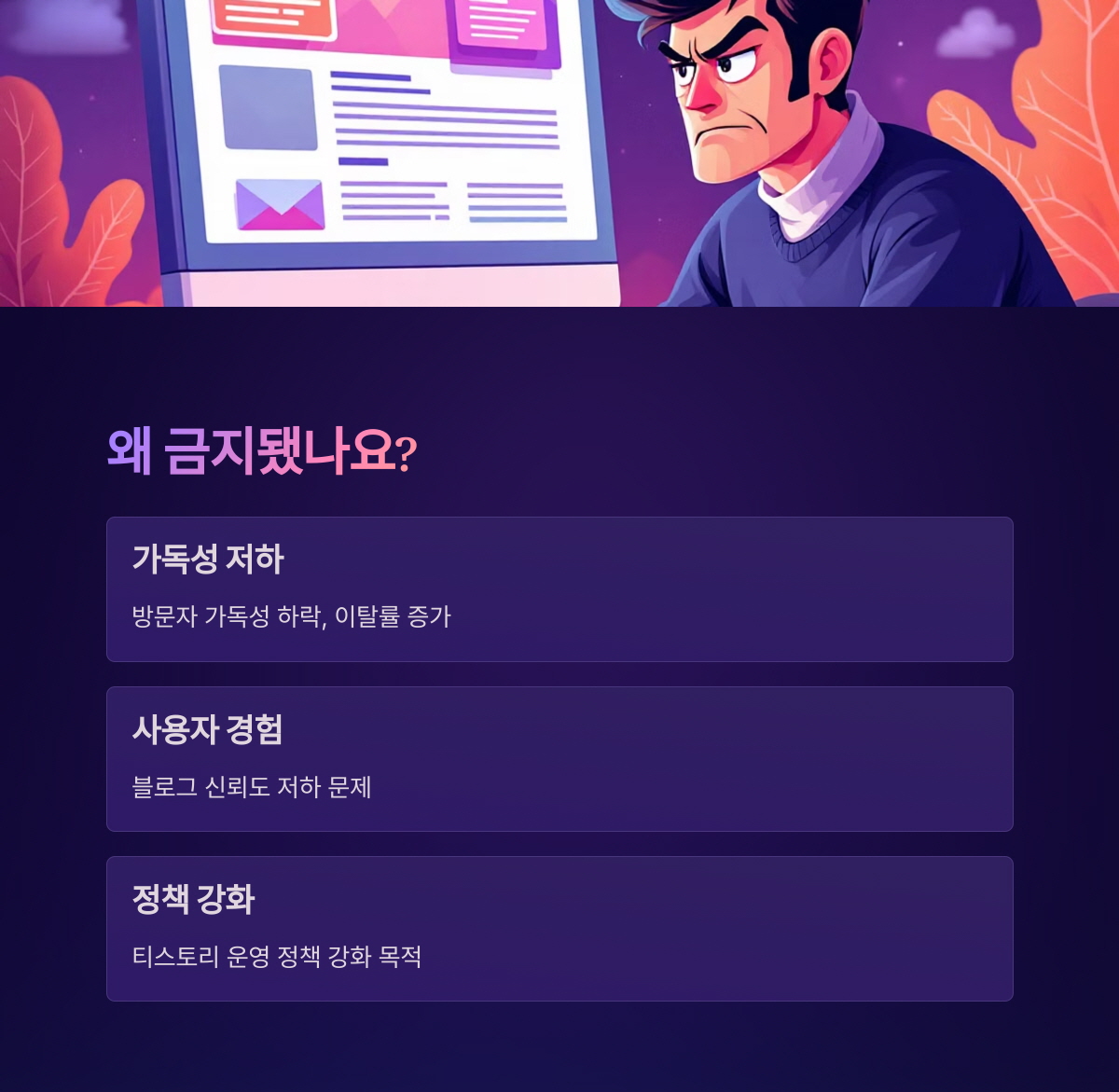👉 이 두 광고는 사용자 가독성과 경험을 해친다는 이유로 티스토리에서 금지됩니다.