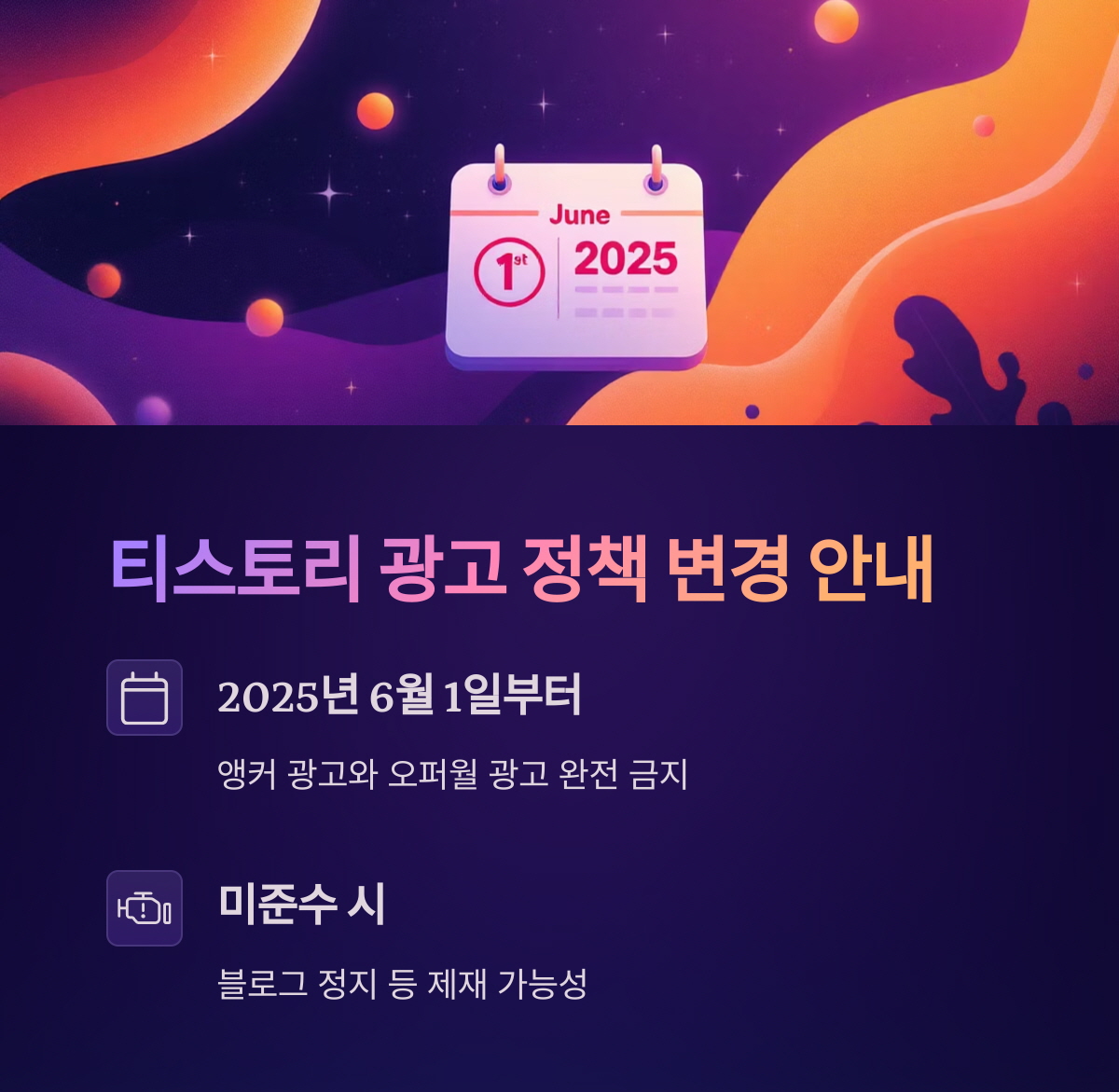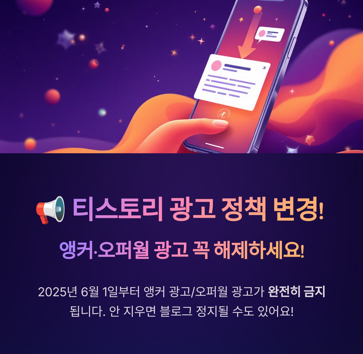 2025년 6월 1일부터 티스토리에서는 앵커 광고와 오퍼월 광고 설정이 전면 금지됩니다.