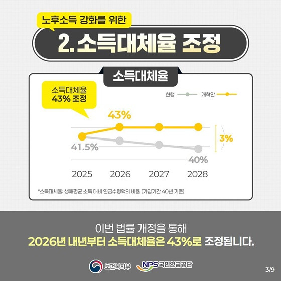 2. 소득대체율 상승: 40%에서 43%로 📊