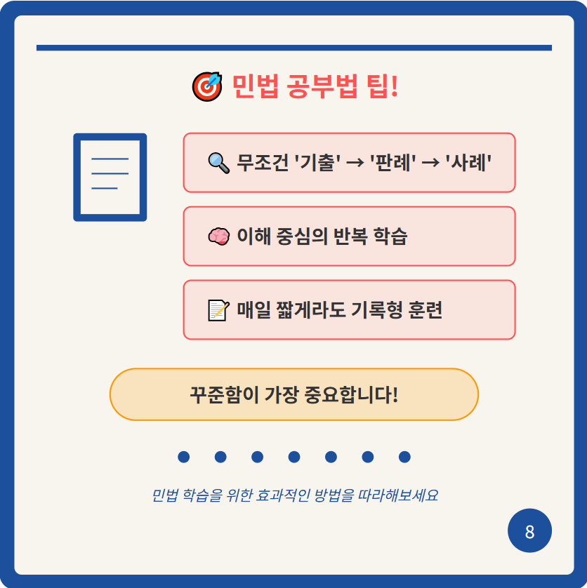 A4. 기출문제 중심의 공부를 넘어서, 최신 판례와 사례 문제까지 학습하는 것이 중요합니다.