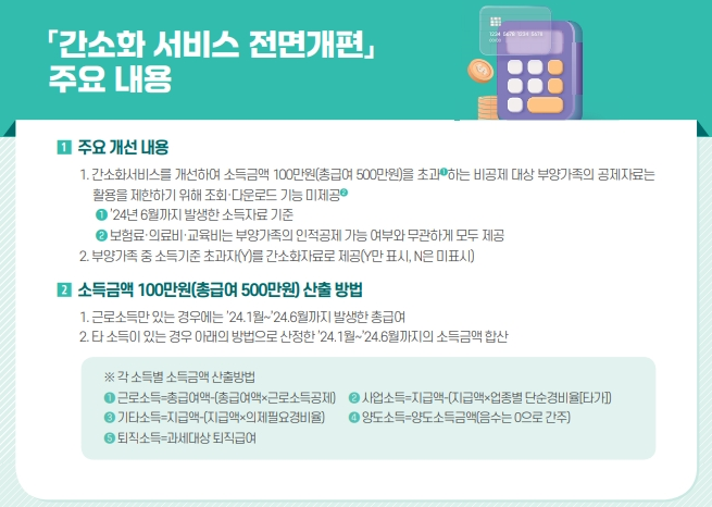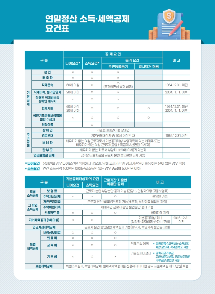 - 소득 계산: 연간 총급여에서 소득세법에 따른 비과세 소득을 제외한 총소득을 계산합니다.