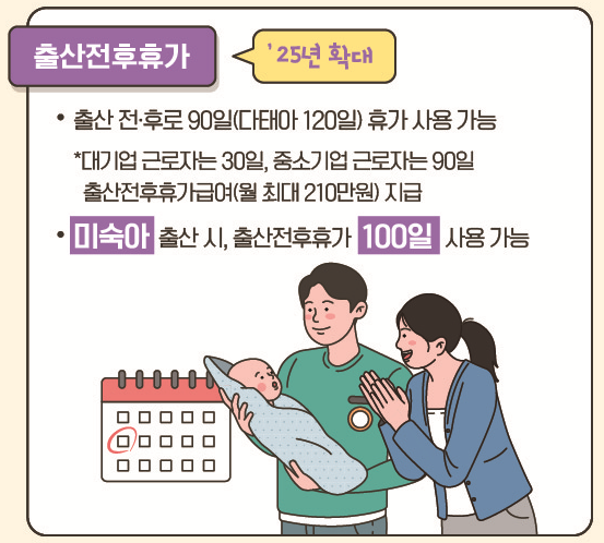 ▲ 출산전후로 90일(다태아 120) 휴가 사용이 가능합니다.