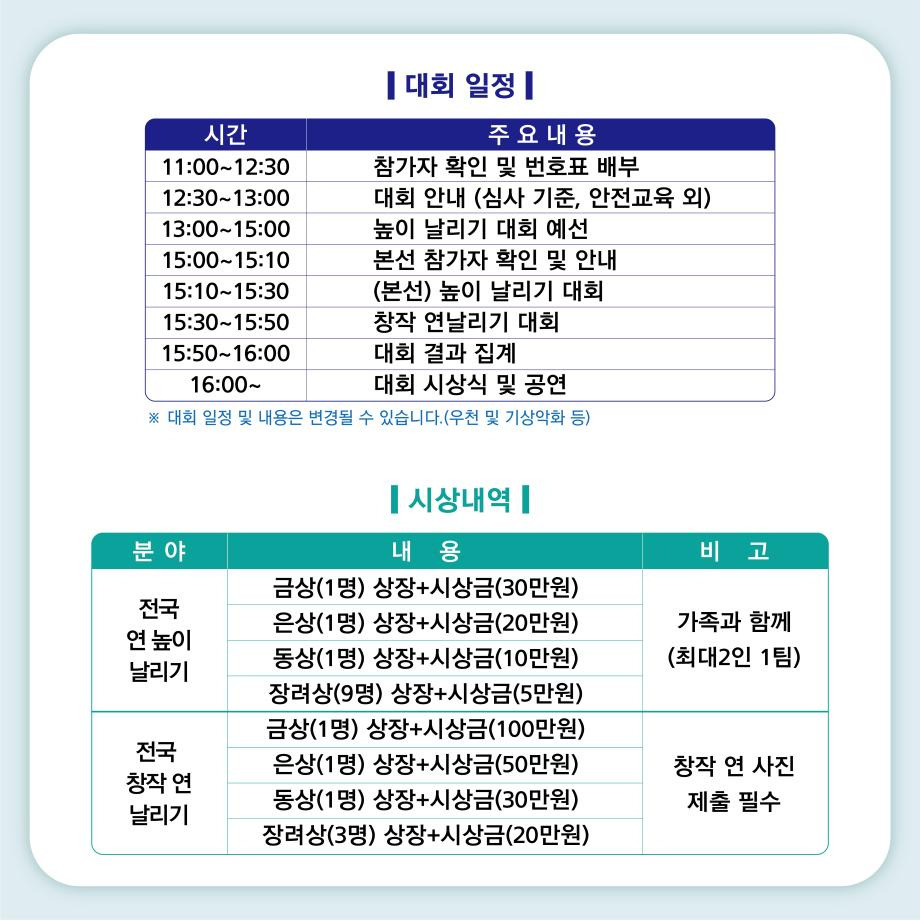 - 전통 연날리기 체험으로 온 가족이 즐거운 시간을 보낼 수 있습니다.