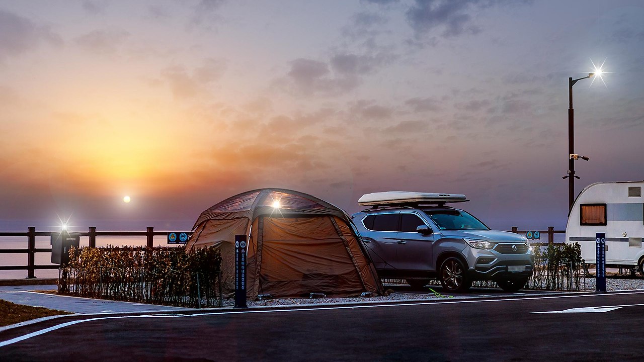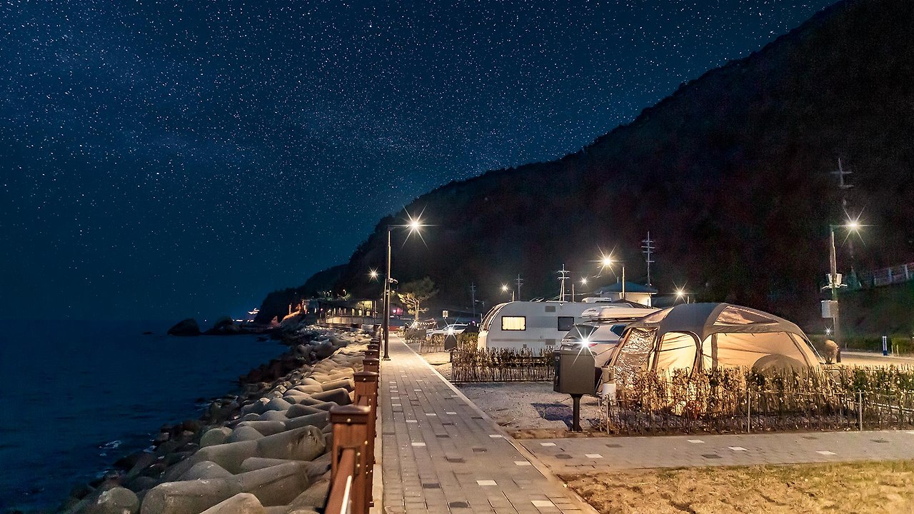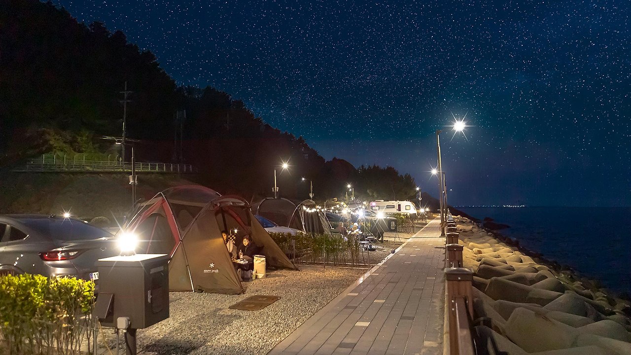 동해 바다를 배경으로 캠핑을 즐길 수 있습니다.