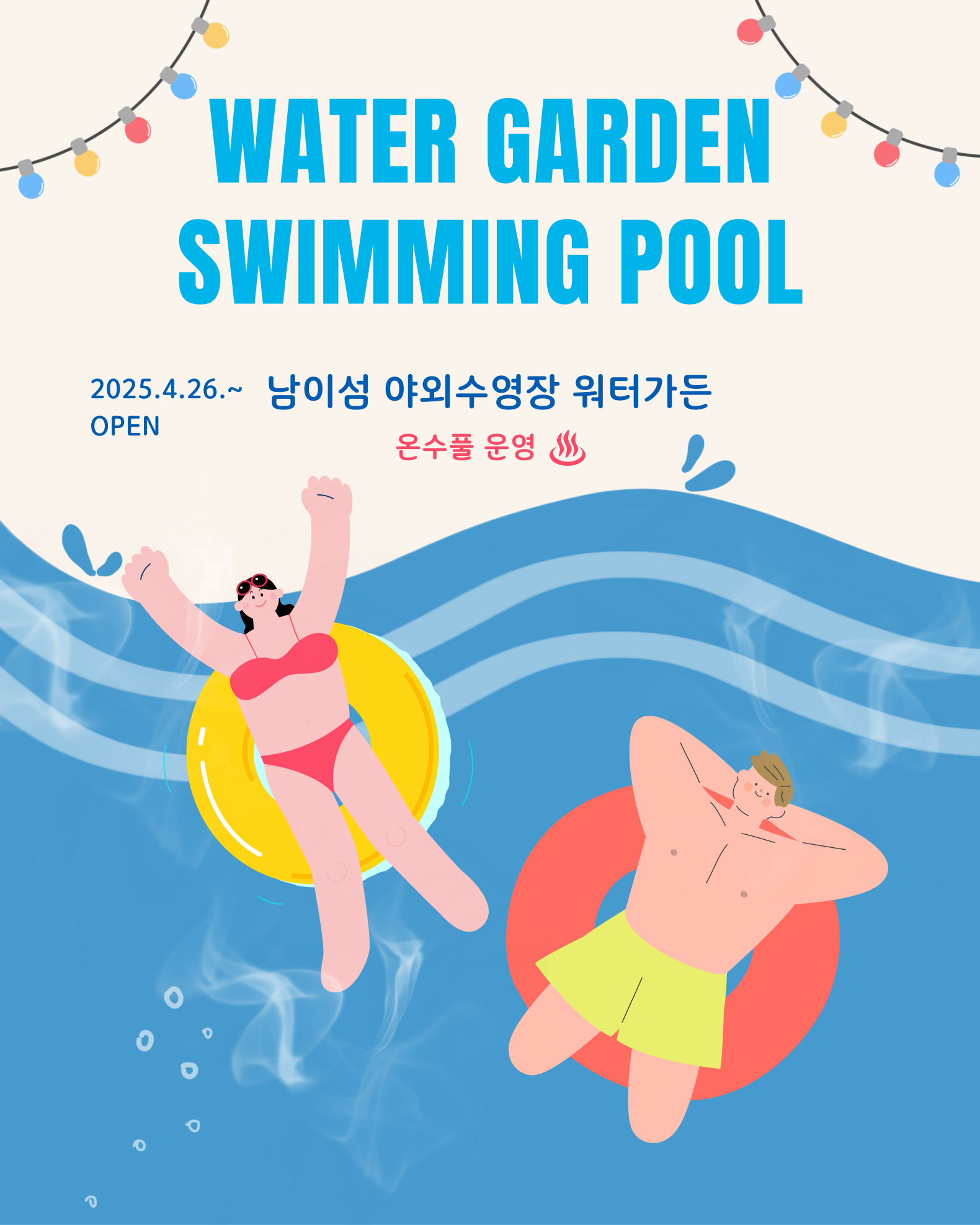 4월 26일부터 10월 12일까지 야외수영장 워터가든을 운영합니다.