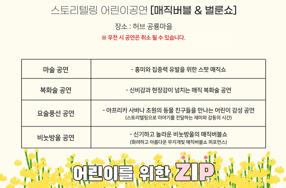 ✔ 비고: 불빛동화축제 점등 시간 18:00(일몰 시간에 따라 변경)