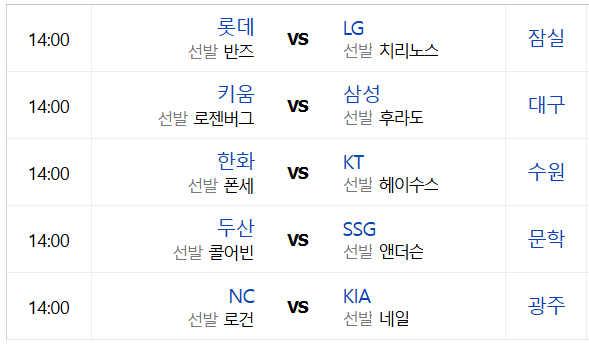 - 키움 히어로즈 vs. 삼성 라이온즈 (대구)
