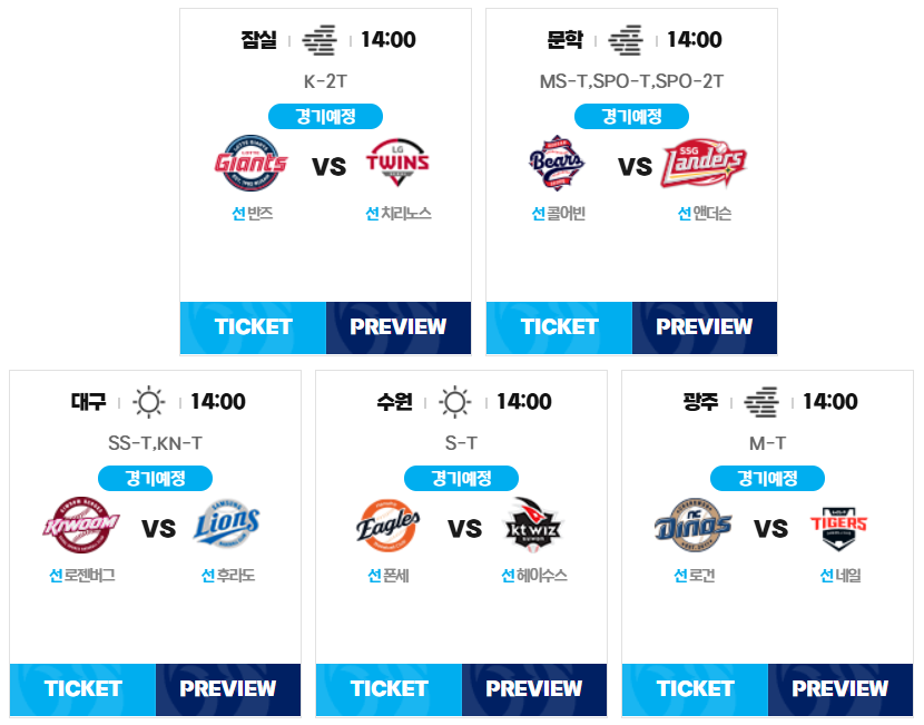 - KIA 타이거즈 vs. NC 다이노스 (광주)
