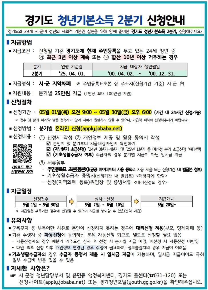 2025년 경기도 청년기본소득은 만 24세가 되는 경기도 거주 청년을 대상으로 합니다.