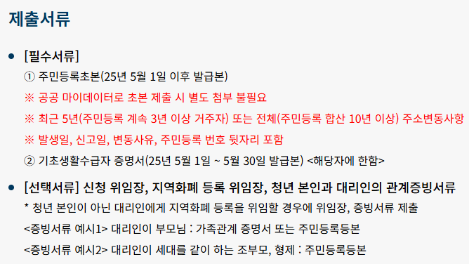신청 시 입력한 주소가 기준이 되며, 거주요건에 영향을 줄 수 있으니 꼭 변경사항은 주민센터에 신고하세요.