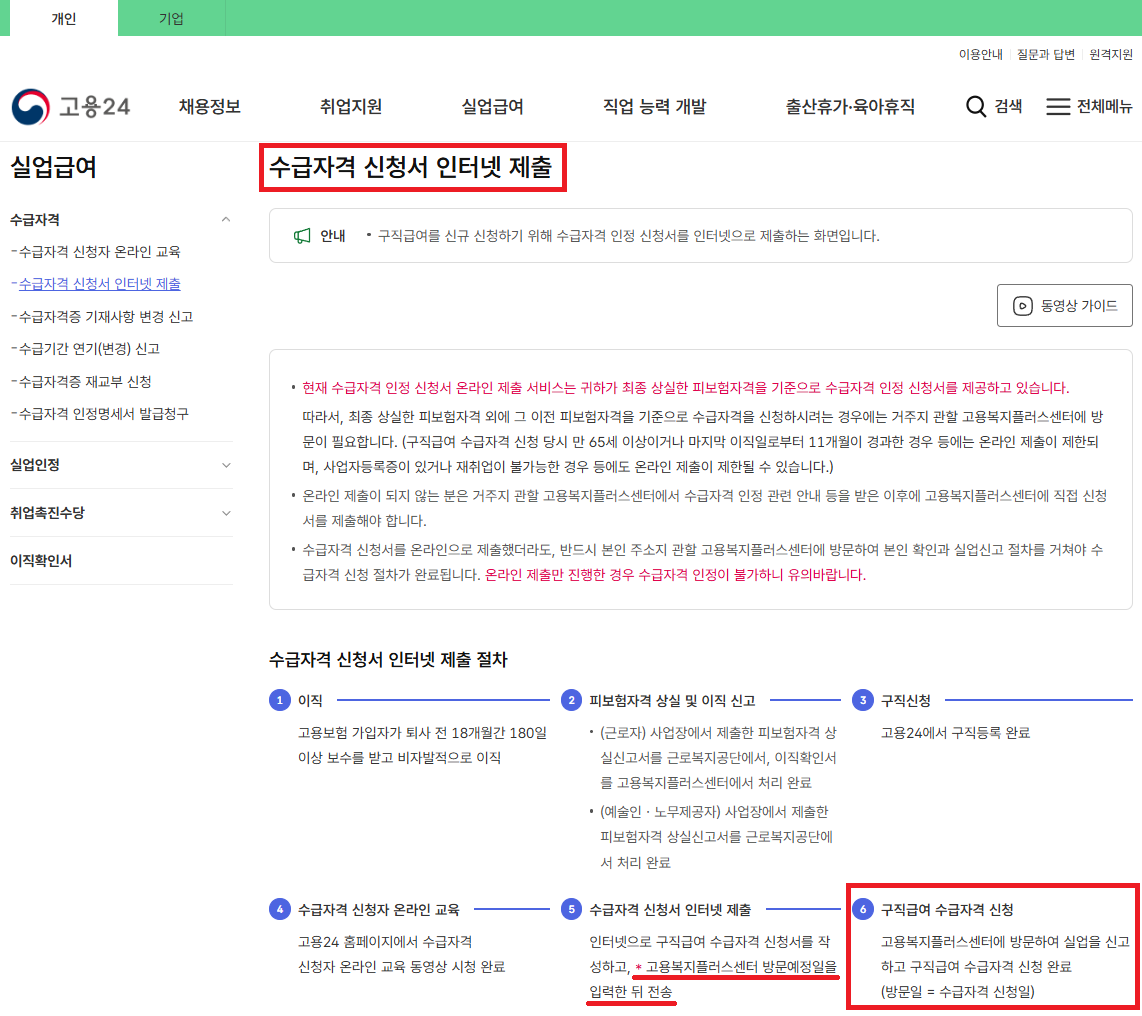 ✔️ 퇴직 후 되도록 빨리 거주지 관할 고용센터에 출석하여 구직신청(인터넷 신청 가능) 및 수급자격 인정신청을 하시면 됩니다.
