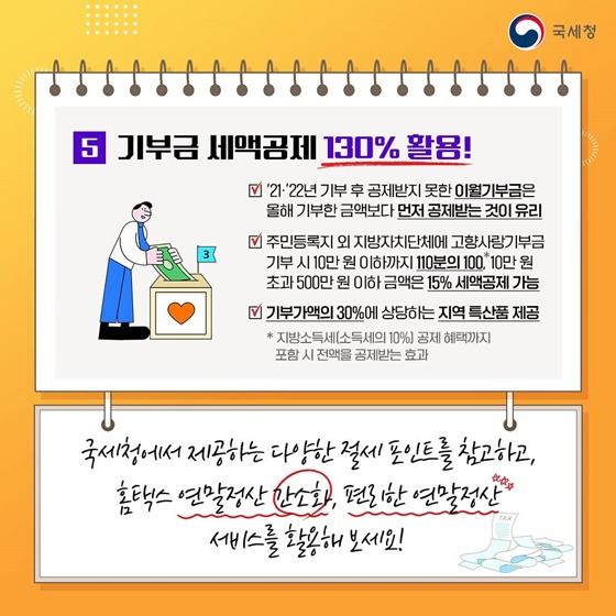 국세청에서 제공하는 다양한 절세포인트를 참고하셔서 13월의 급여인 연말정산 많이들 환급받으세요.