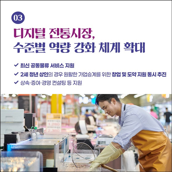 - 청년 상인을 위한 창업 지원: 가업 승계를 준비하는 청년 상인들에게 창업 지원 및 경영 컨설팅을 제공합니다.