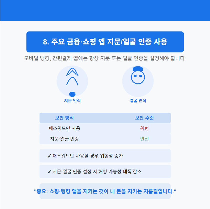 8. 주요 금융·쇼핑 앱 지문/얼굴 인증 사용